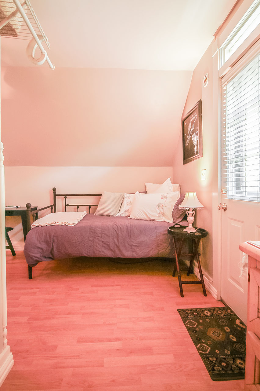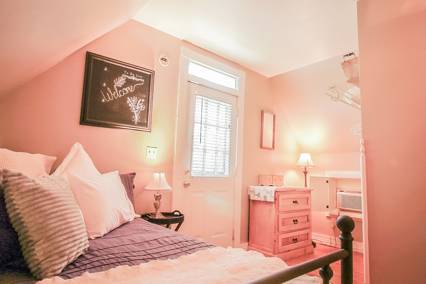 Welcome to your uniquely Eurekan overnight stay! A budget-friendly option for the solo traveler! The Peddler is nestled in the upstairs of a whimsical and elegant 1882 Victorian home. Your room offers a super comfy twin bed with loads of fluffy pillows, a small work-desk, AC, heat, free wifi, and a shared bathroom with shower. (There is also an extra full bath with tub/shower combo downstairs that you will have full access if you so please).